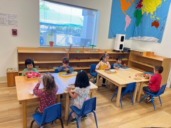 • Individual Work Time: Children select from various learning areas—Practical Life, Sensorial, Language, Math, Science, Geography, and Art—to work at their own pace, fostering independence and focus.